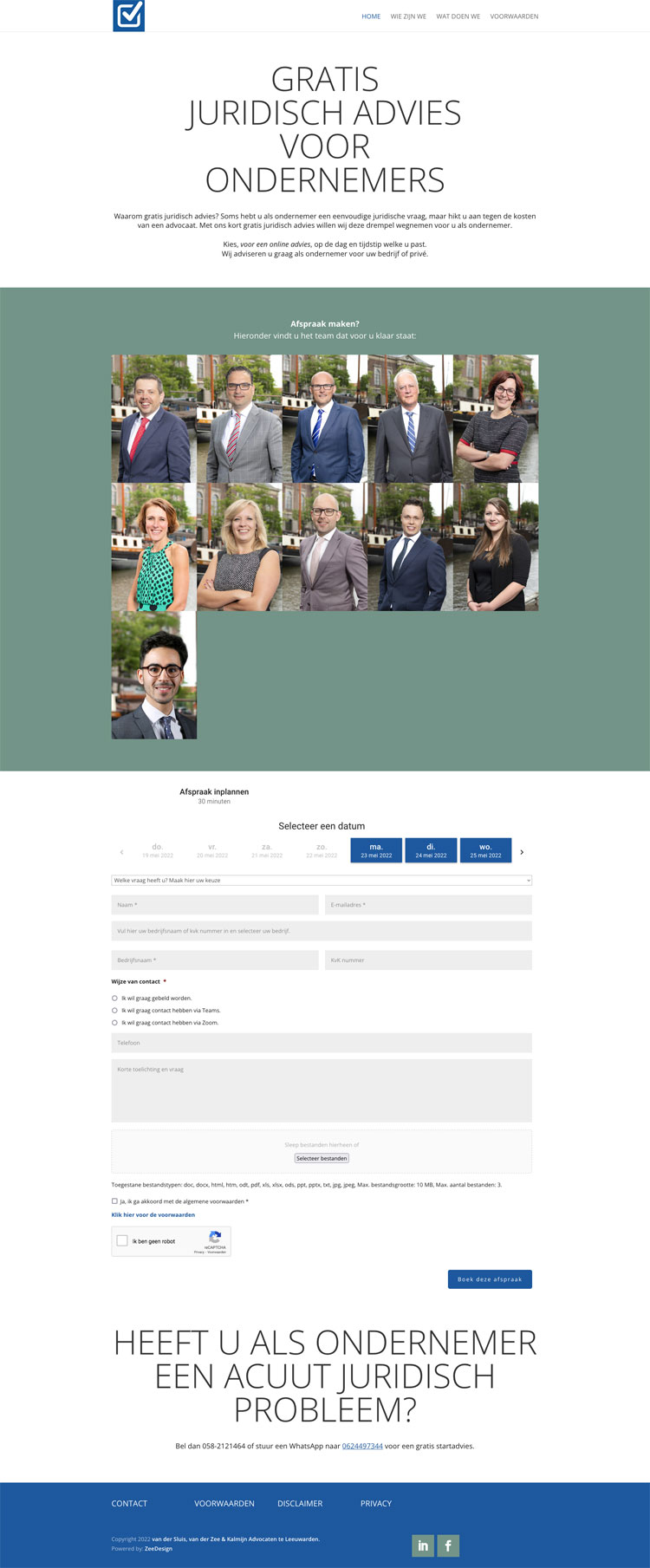 Van der Sluis, Van der Zee & Kalmijn Advocaten verzocht ons of wij een afspraken tool voor hun konden ontwikkelen en dit is het resultaat!